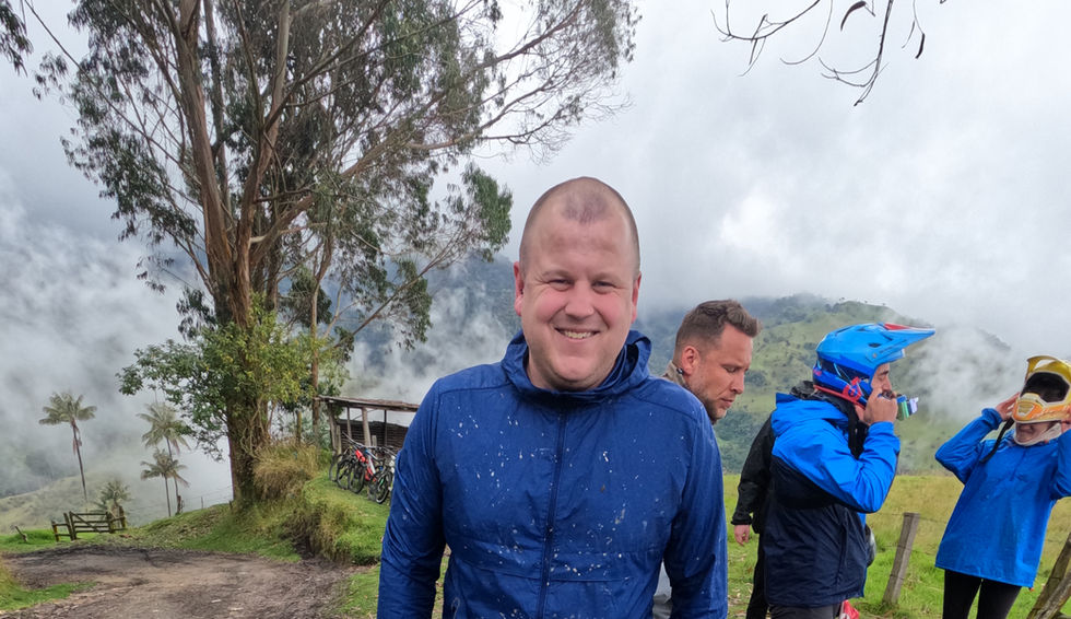 Am nächsten Tag schlenderten wir zum Treffpunkt der Velotour. Mit einem Jeep fuhren wir ca. 45Minuten den Berg hoch und düsten mit unseren Rädern in Richtung Tal, vorbei an den Wachspalmen. Unterwegs gab es noch ein kleines Pick Nick bevor es dann in zügigem Tempo bergab ging. Immer wieder machten wir einen Halt um die Natur zu bestaunen oder grossen Trucks auszuweichen, die die Schotterpiste mehr oder weniger versuchten in Schuss zu halten. Gegen Ende der Abfahrt nahm der Regen immer mehr zu und im Tal angekommen waren wir von oben bis unten mit Schlamm bedeckt sodass unser Guide uns mit dem Hochdruckreiniger komplett abspritzte! Durchnässt bis auf die Unterhosen aber begeistert machten wir uns auf den Weg zurück ins Hotel. Dort musste Jasmin zuerst einmal ca. eine Stunde lang die Turnschuhe föhnen weil es das einzige Paar war, das sie dabei hatte!